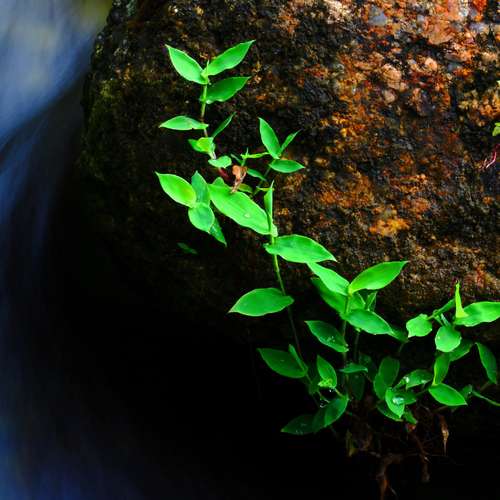 流水石頭與草葉