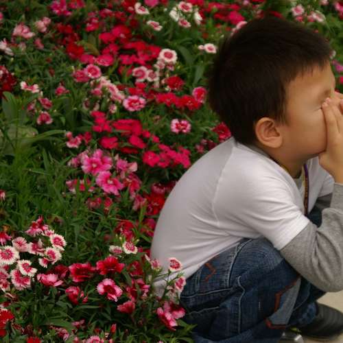 花展中的小男孩