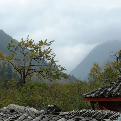 屋簷外的山幽美景