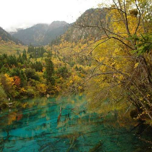 彩池疊影耀黃龍
