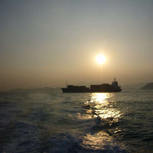 晚霞船影