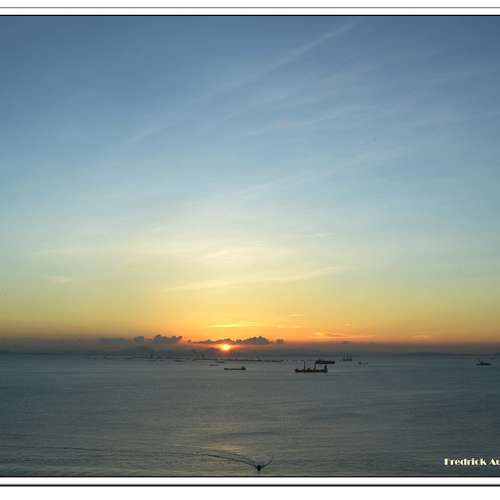 水平線上看落日