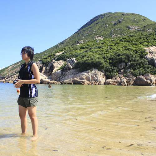 陽光下美女在玩水