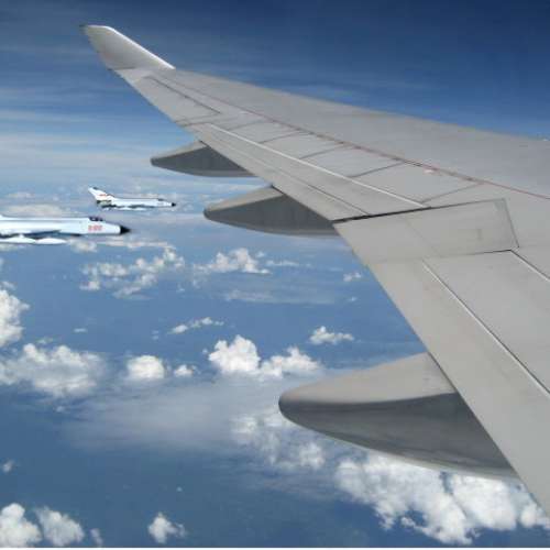 客機窗外的戰機