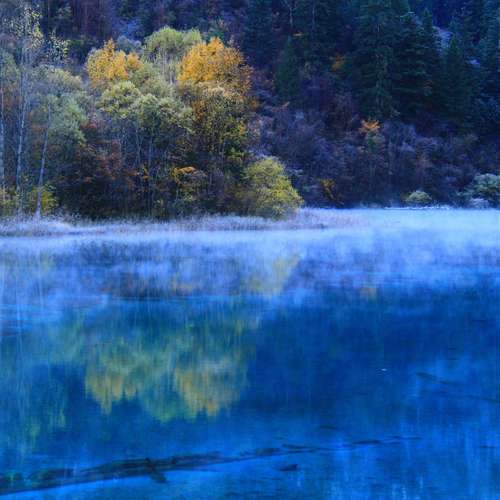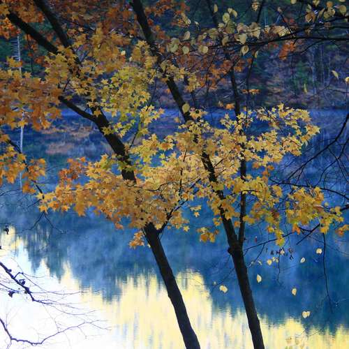 红葉飘落碧水湖