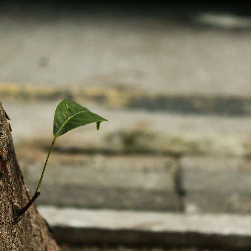 秋樹幹上一點綠