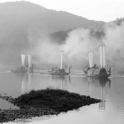 霧中一小舟