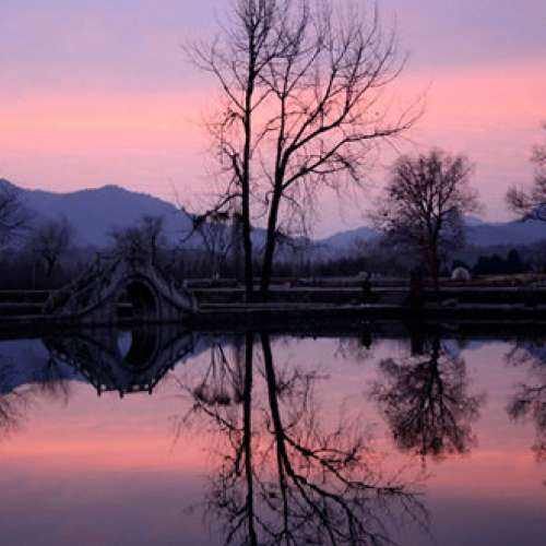 晚霞下的古村