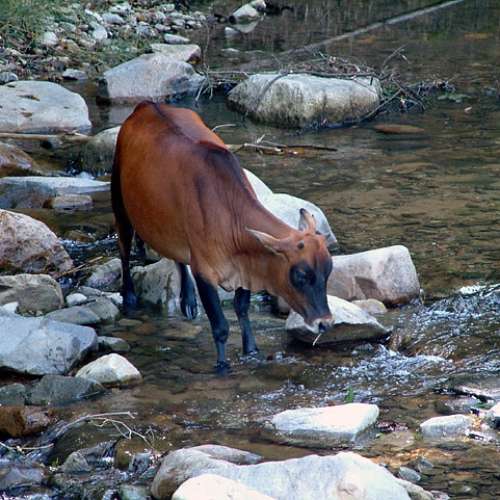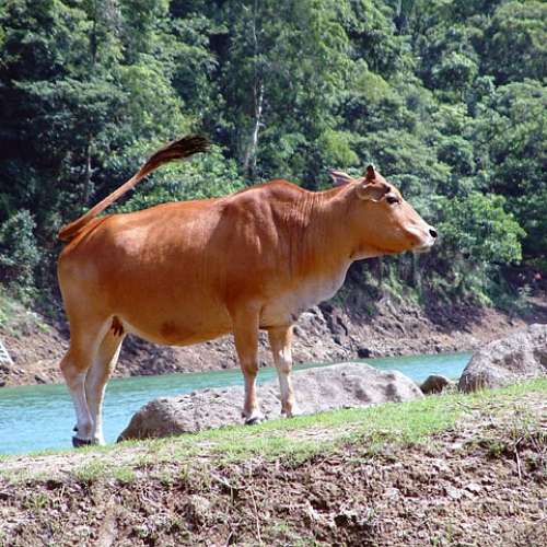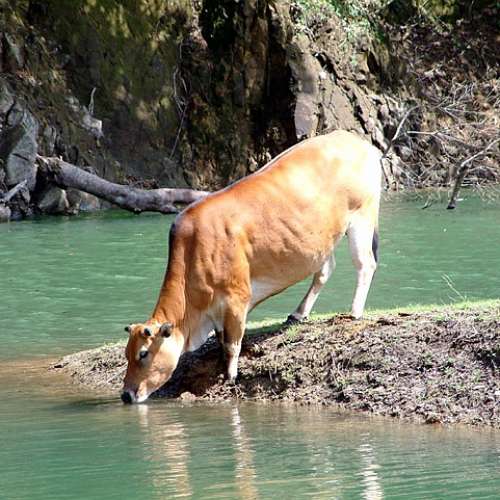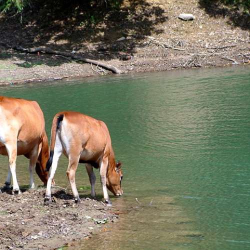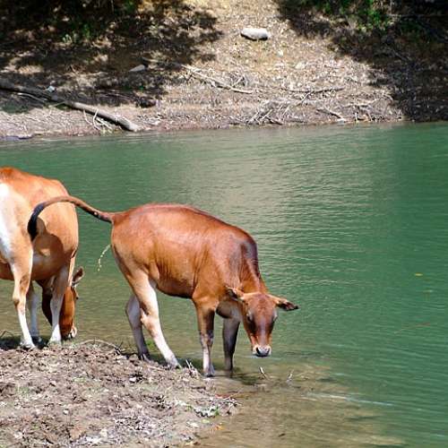 污染水塘的牛