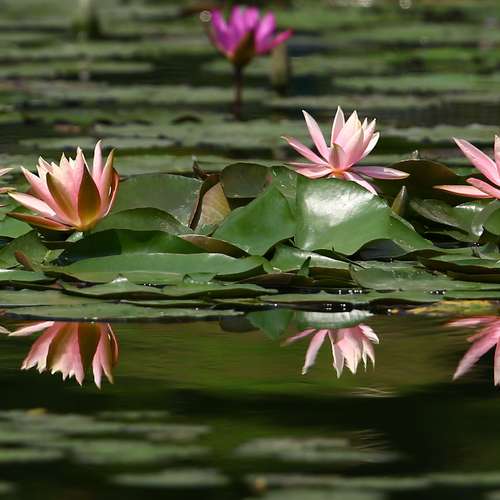 池塘中四朵睡蓮