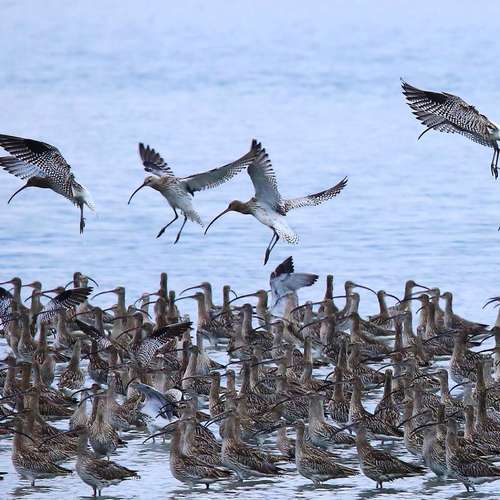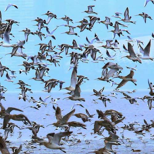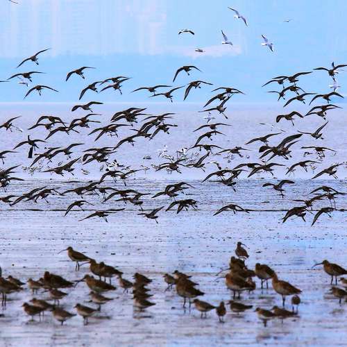 鷸群飛翔