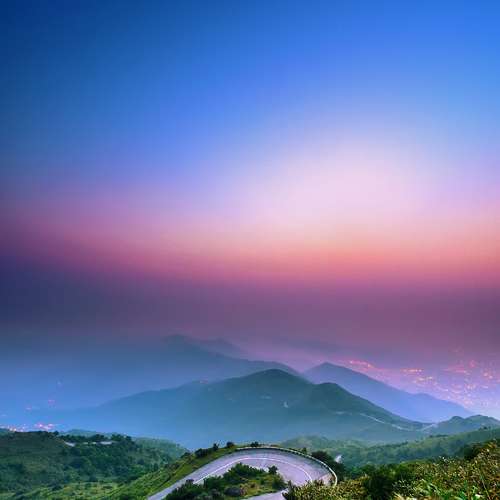 山景、燈火、雲海、晚霞