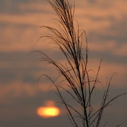 日落中的草