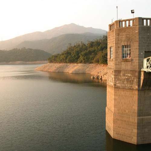 黃昏時分的水壩