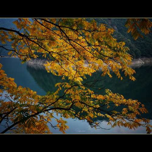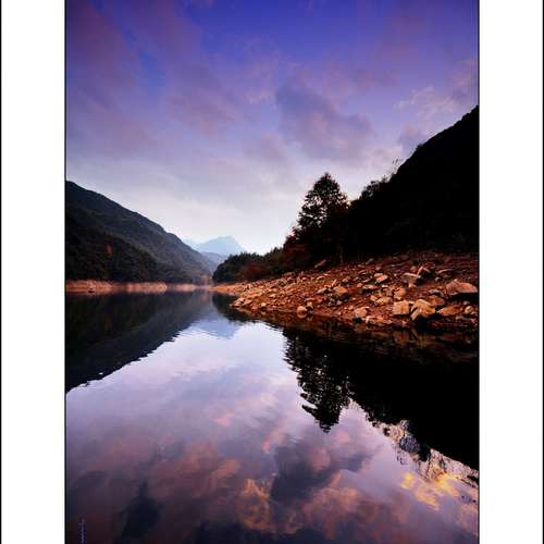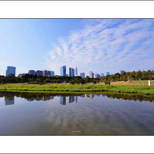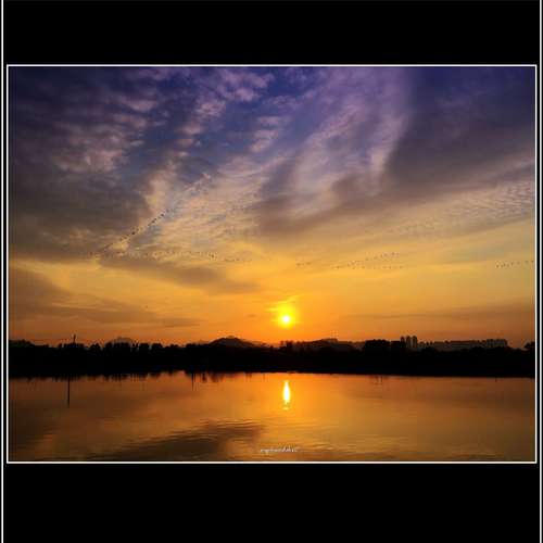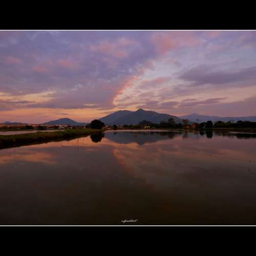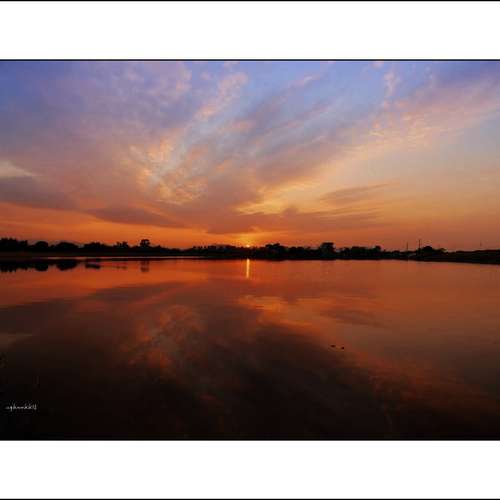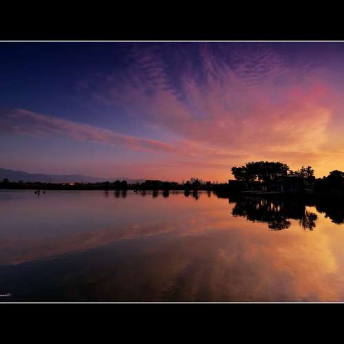 一泓碧水映夕陽