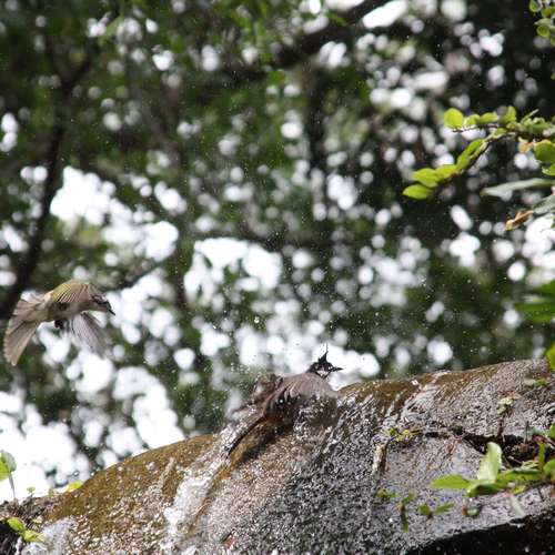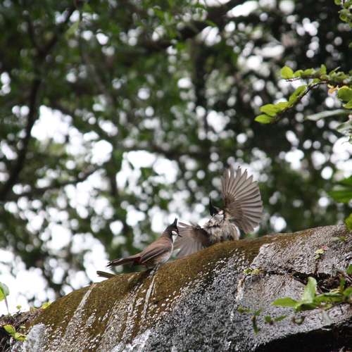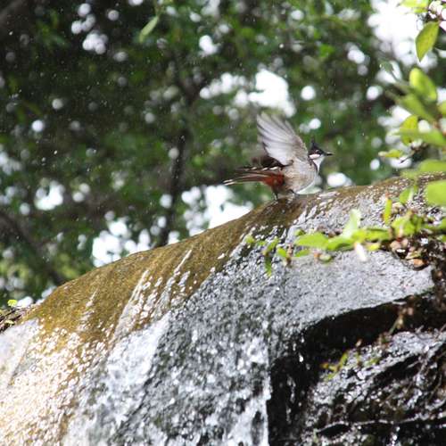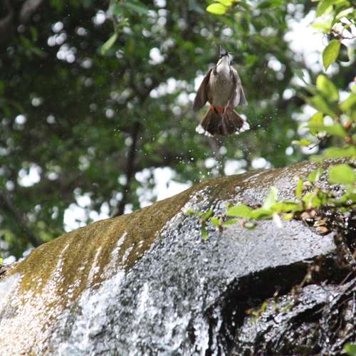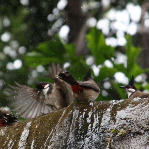 紅耳鵯戲水