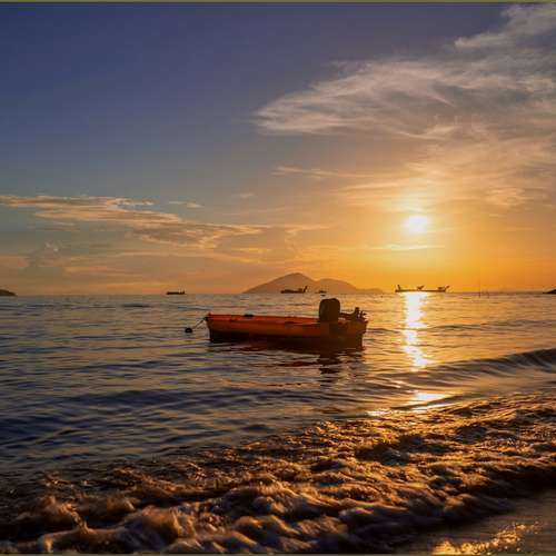 夕照孤舟