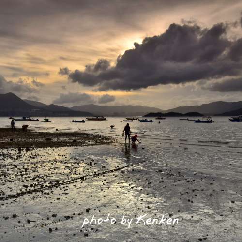 日落泥灘風晴