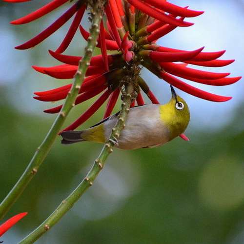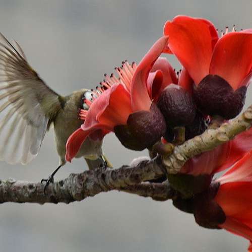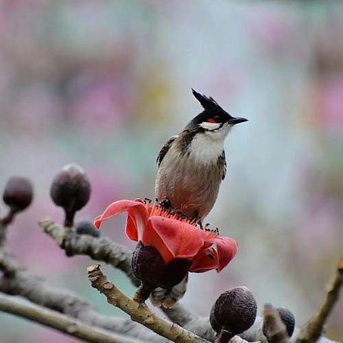 一朵紅棉立一鵯......