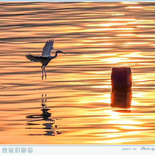 夕陽白鷺