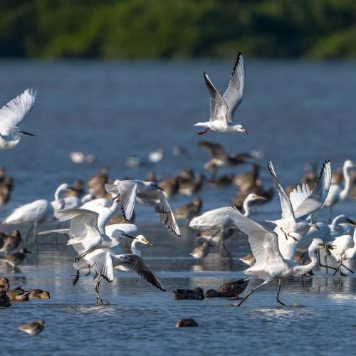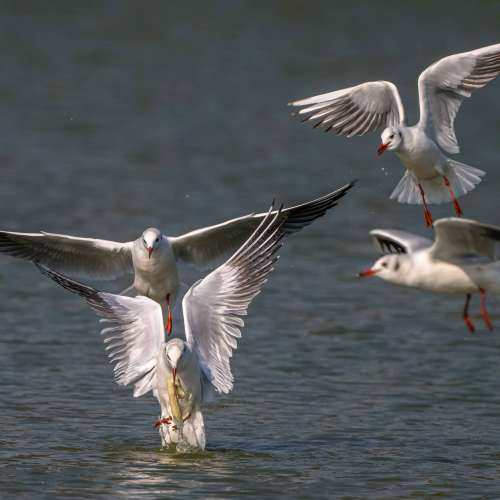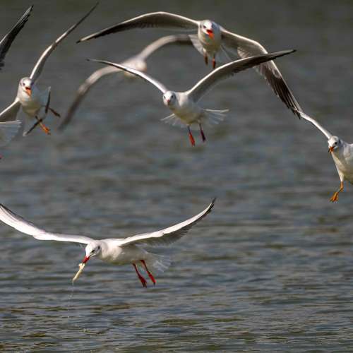 紅嘴鷗覓食圖.