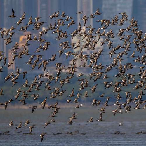 紅腳鷸群飛.