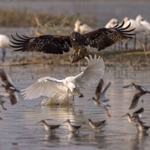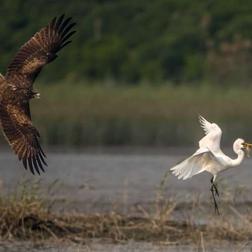 白鷺吞黃鱔.