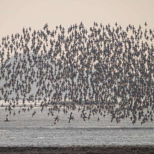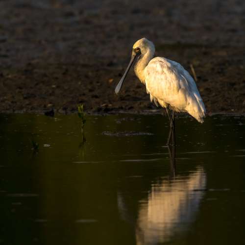 黃昏時分的黑臉琵鷺.