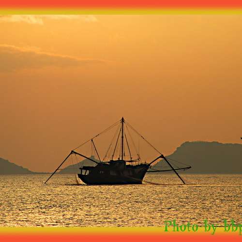 金光下的網魚船