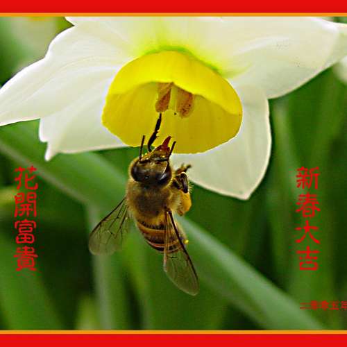 蜂之蜜語:「新春大吉,花開富貴!」