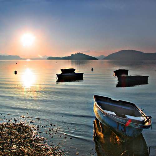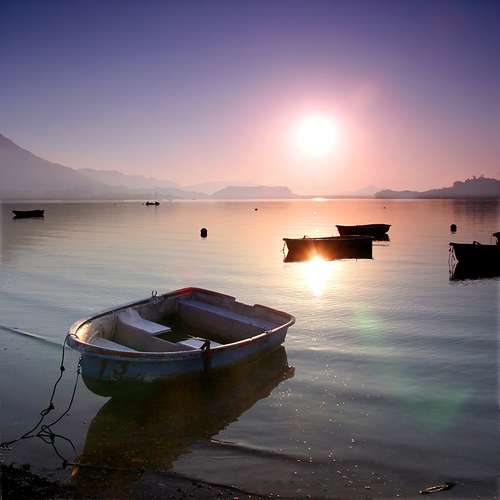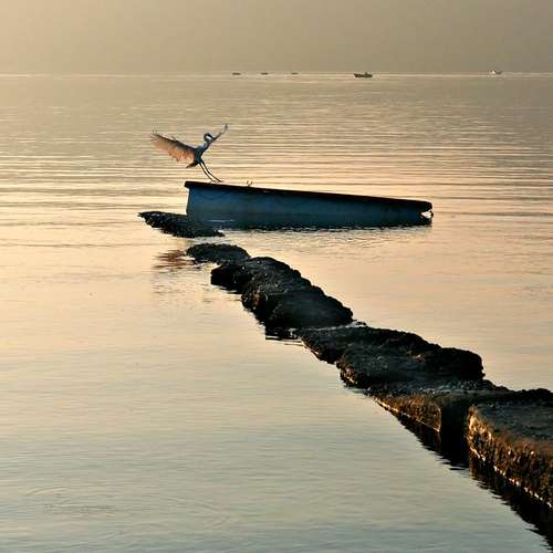 清晨 舟橫 無人