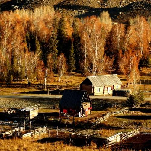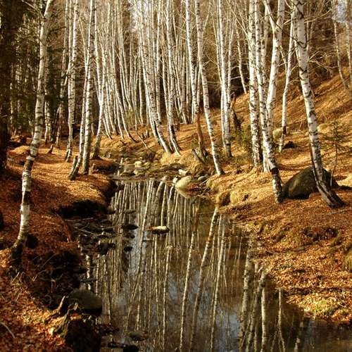 深秋之白樺樹林