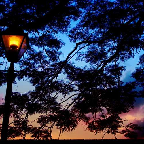街燈伴晚霞