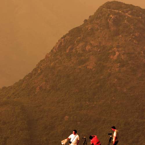 三位影友與背後的觀音山