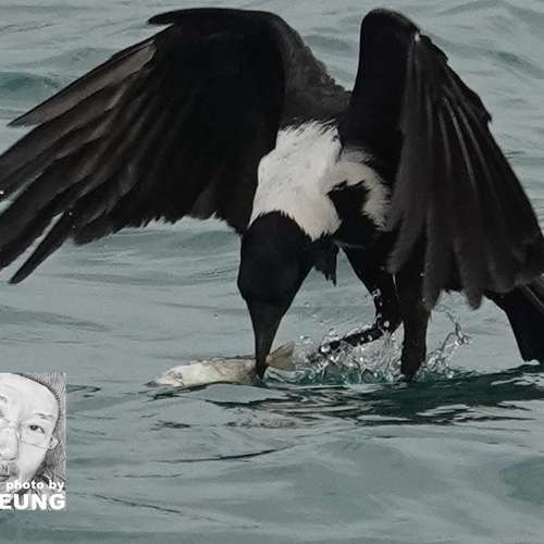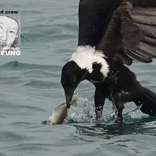 白頸鴉海中捉魚 5