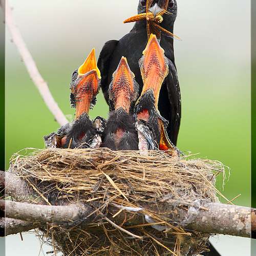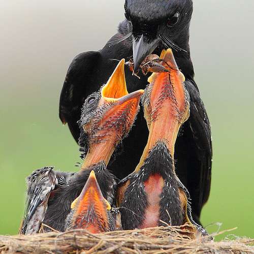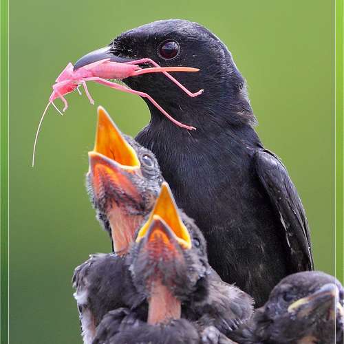 黑卷尾餵哺
