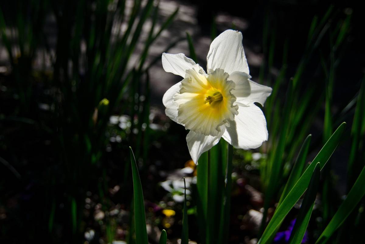春天早晨的陽光透射過水仙花瓣,給人煥然一新的感覺