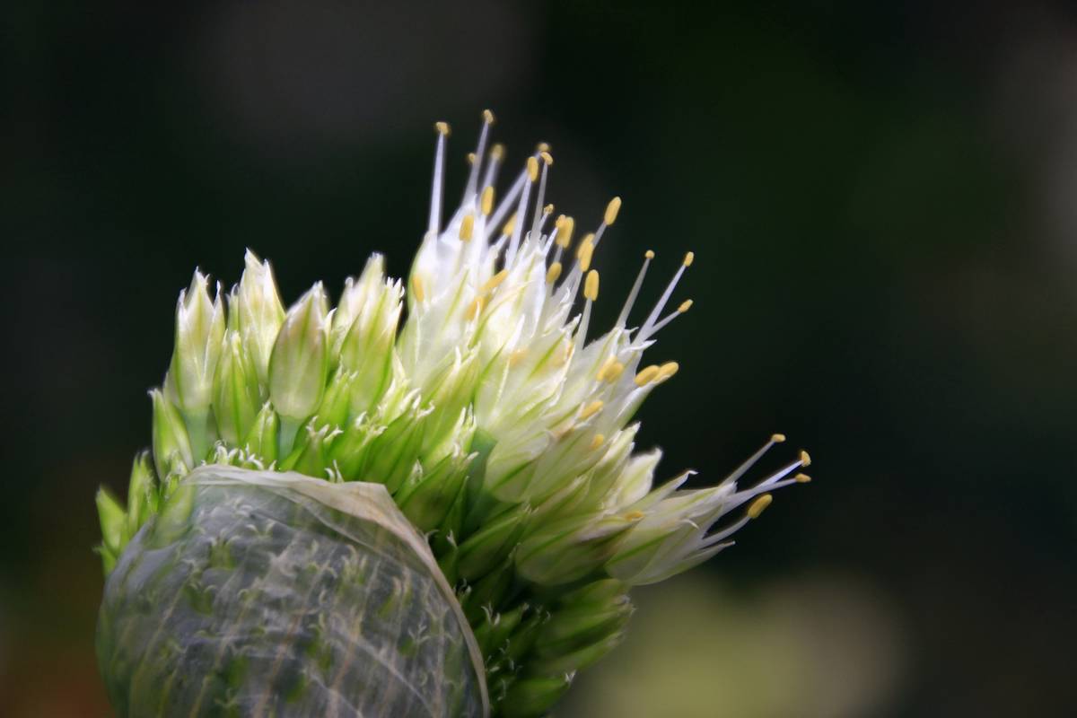 在公司地盤種下株蔥任它生長,近日開出花球,見它翠怪便拍下來.