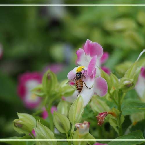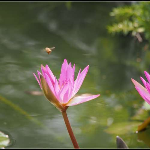 蓮上的蜂採