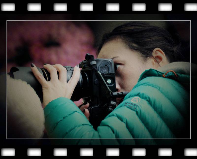 師姊全神貫注調整角度近攝菊花, 小弟用500mm 反射鏡拍倒她獨具慧眼的一面 ...... 多謝賞圖 ....... 祝冬至及聖誕快樂 !
