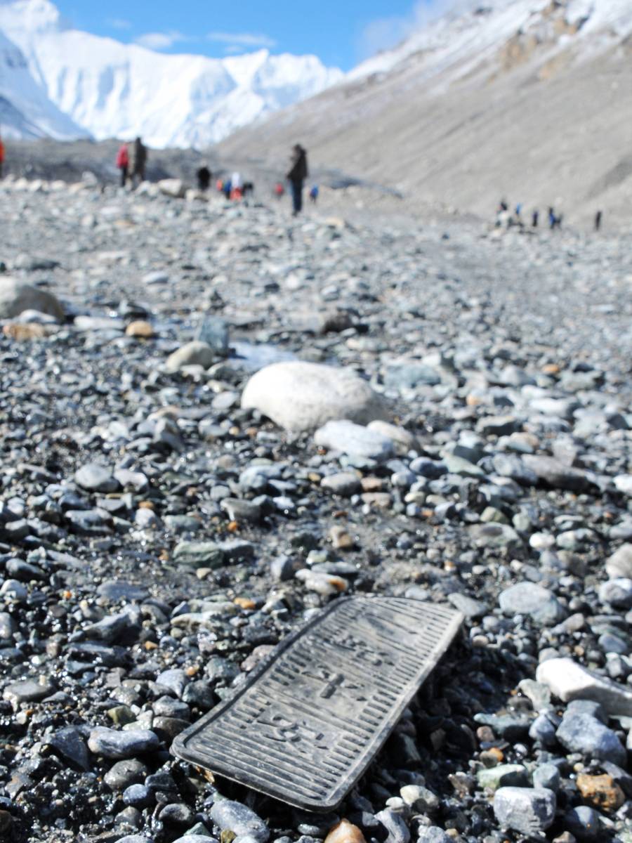 在通向珠穆朗瑪峰的大本營的路上, 寒冬的風加上5000米海拔的高度, 令不少遊客止步。 我也在高原反應下踏上了走向珠峰大本營的路, 在路上見到了「一路平安」的一個車胎殘骸, 也算是對我這個路人的一種祝福吧!