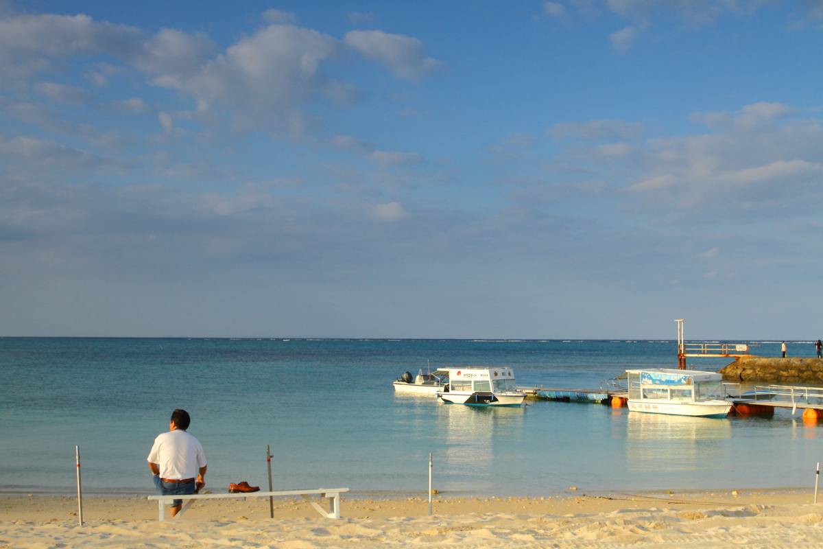 那天在拍攝沖繩殘波海灘的早上時,剛巧見到一個老爺爺帶同小孫兒到海灘玩樂,老爺爺累了在白椅作息,這人和事豐富了這張照片的出處...多謝觀賞