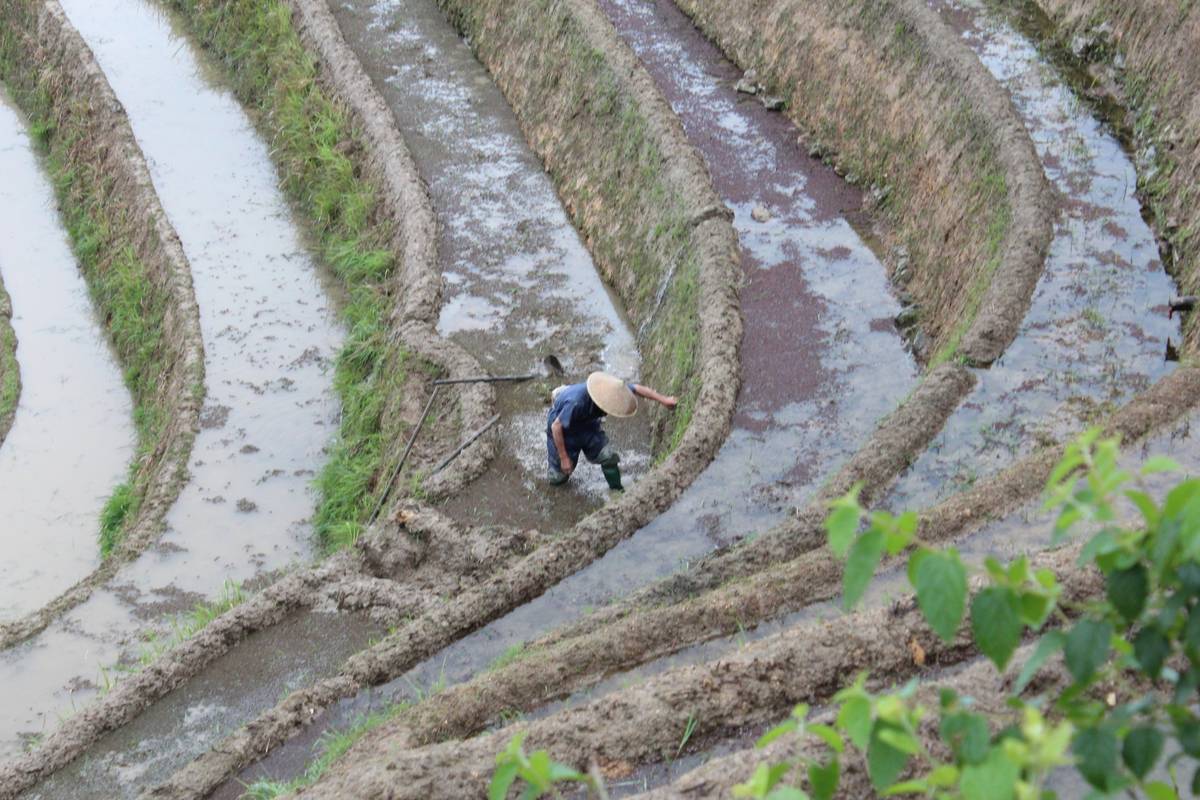 在梯田勞力的農夫............