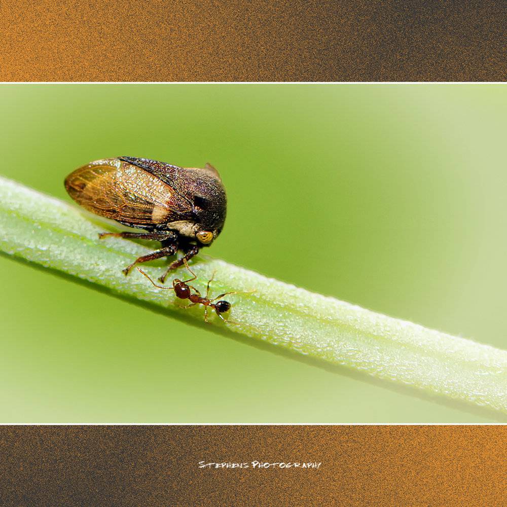 金牛弧角蟬BB ~ 茫茫蟲海小蟬B和蟻哥在枝頭相遇, 很有緣啊! ~ 謝謝觀賞!!