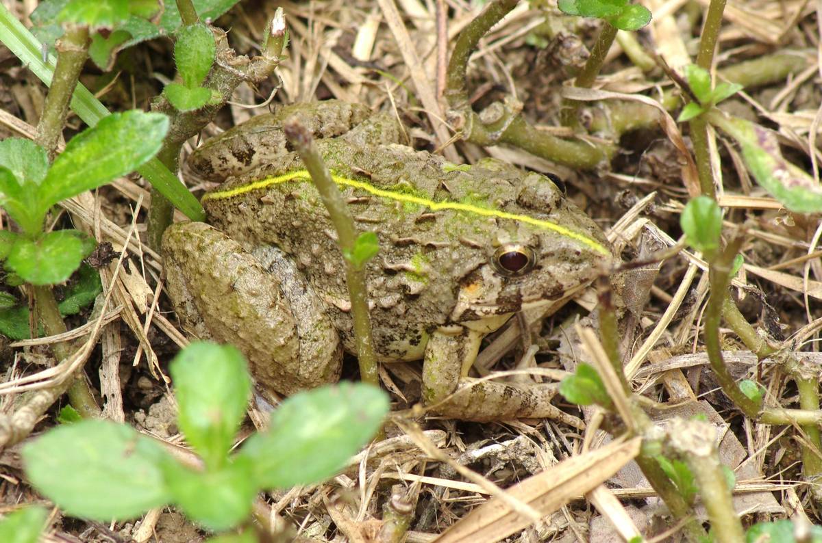 大埔滘隨拍, 此蛙背部有一條黃線, 是天生還是人為的, 就不得而知了。