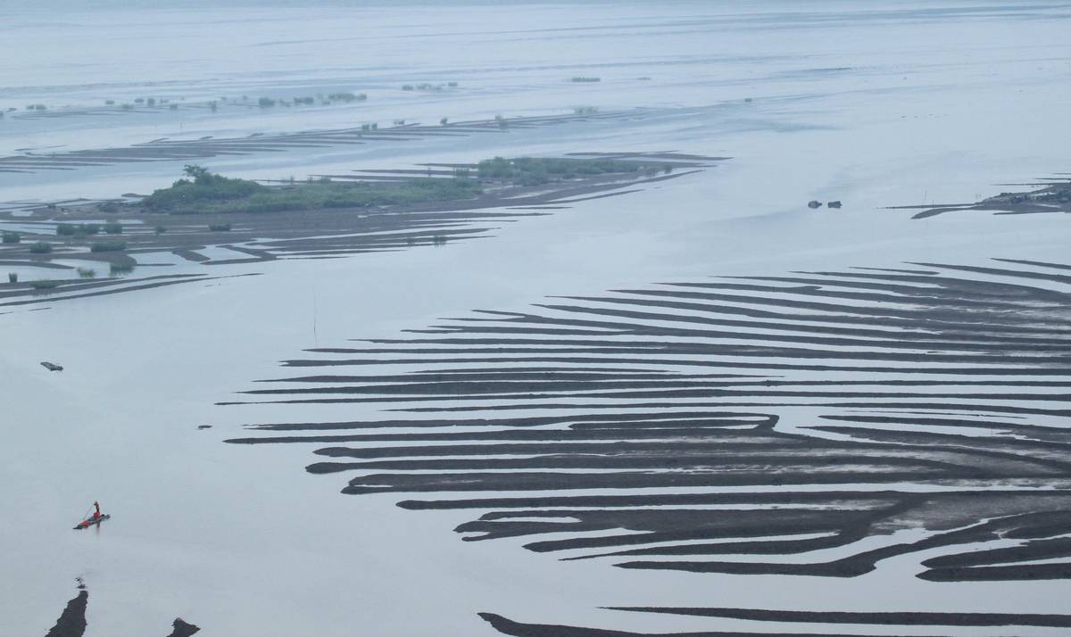 鳯尾灘因潮水起落現没.
