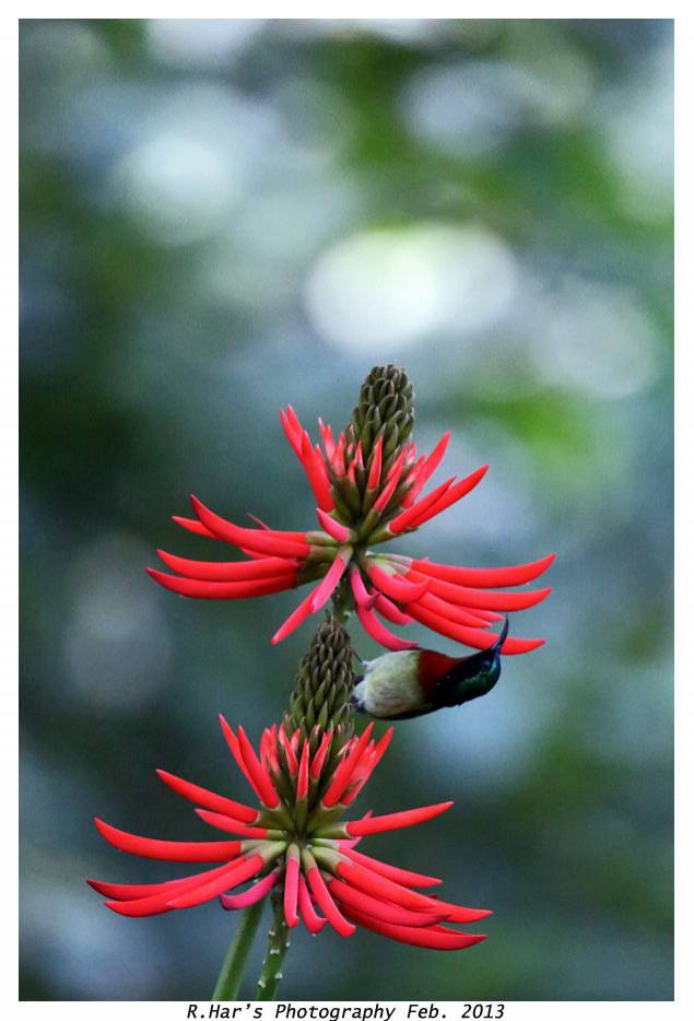 大家都拍鳥兒和花(太陽义尾鳥+象牙花), 我也湊熱鬧吧!