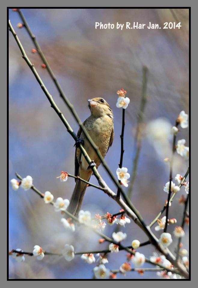 寒梅除吸引我去欣賞, 還有可觀賞其他生態包括: 蜜蜂採花、報喜蝶吸蜜、伯勞留鳥覓食…真的湊熱鬧!