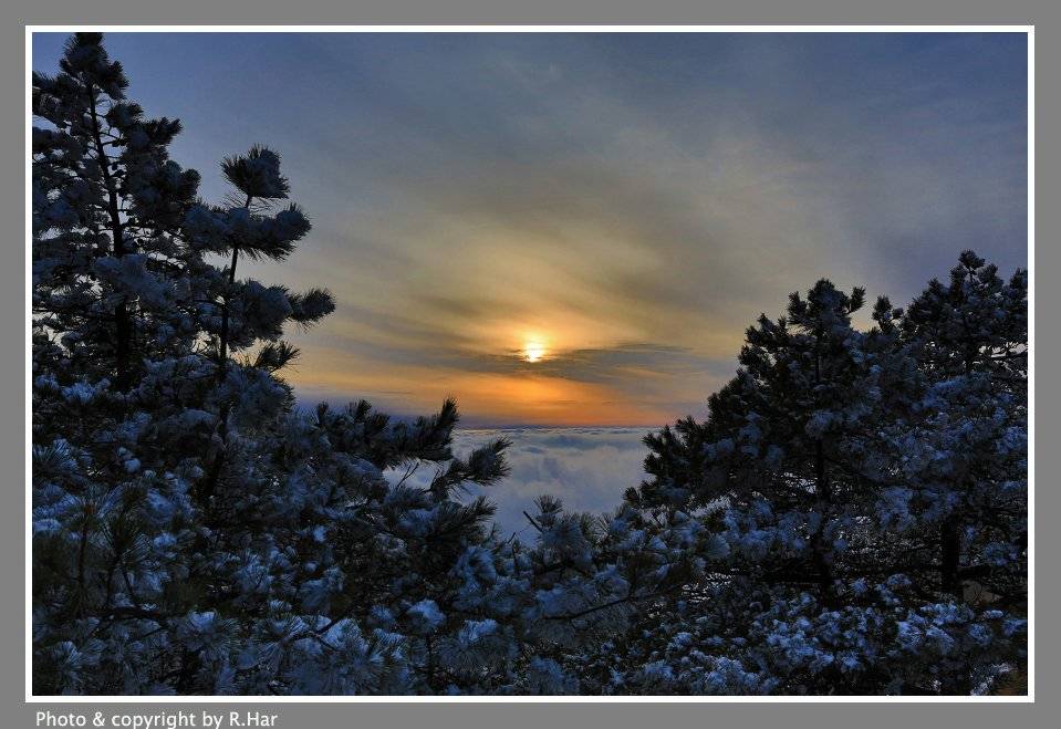 如此淒美日落映在黃山...