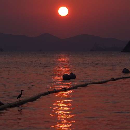 紅天金光影鳥兒